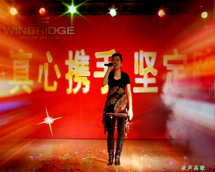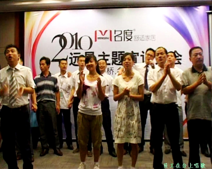 員工在臺上唱歌