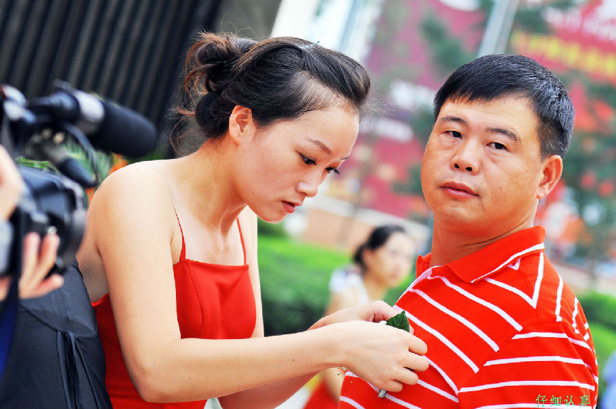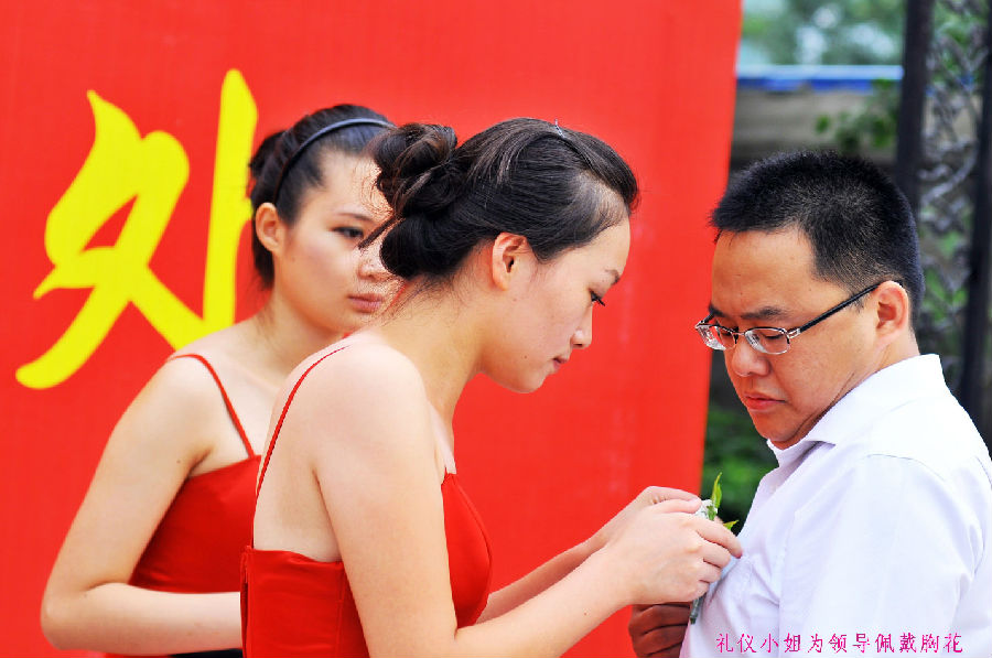 禮儀小姐為領(lǐng)導(dǎo)佩戴胸花